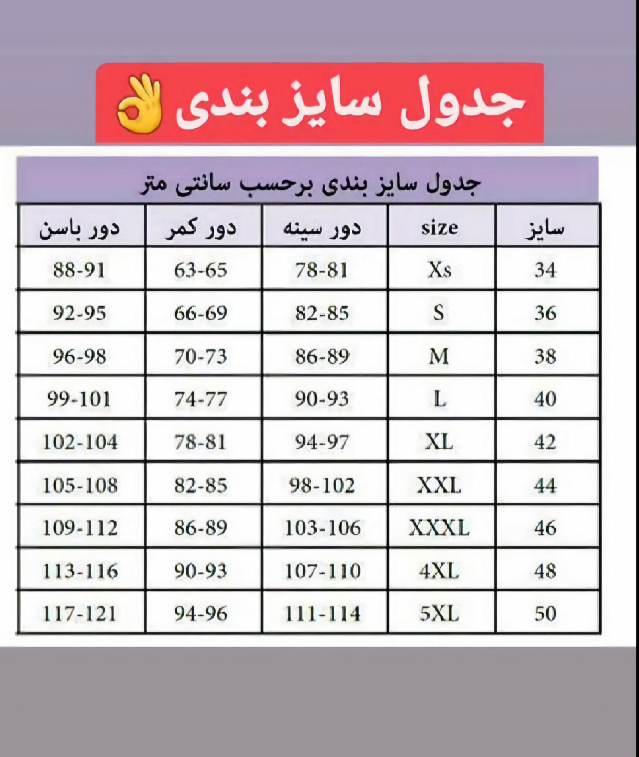 لطفا سایز خودتون طبق جدول مشخص کنید