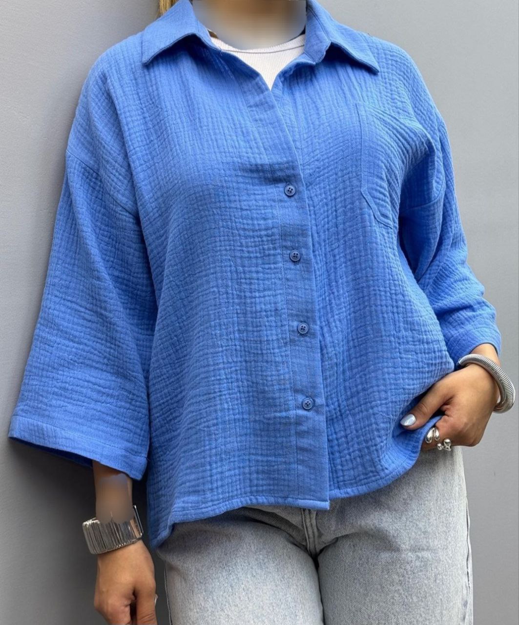 شومیز باکسی زنانه جنس دبل فیس (وال موسیلین) خنک