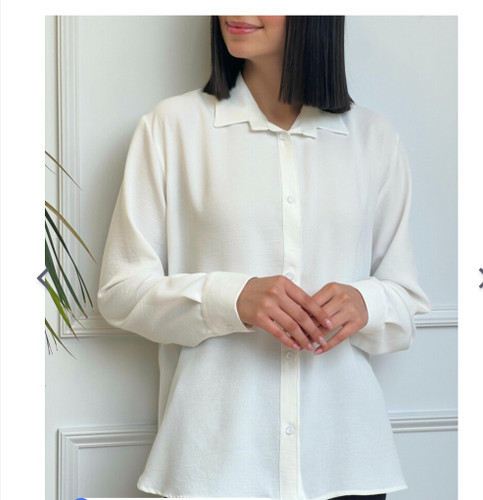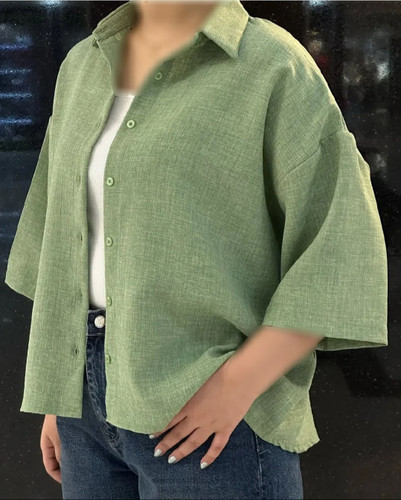 شومیز زنانه مدل باکسی جنس لینن نچرال