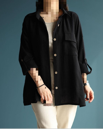 شومیز پاییزه زنانه مدل باکسی جنس کتان